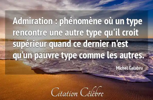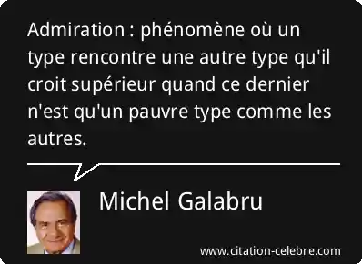Admiration : phénomène où un type rencontre une autre type qu'il croit supérieur quand ce dernier n'est qu'un pauvre type comme les autres.