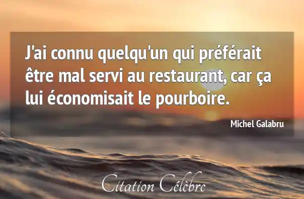 J'ai connu quelqu'un qui préférait être mal servi au restaurant, car ça lui économisait le pourboire.