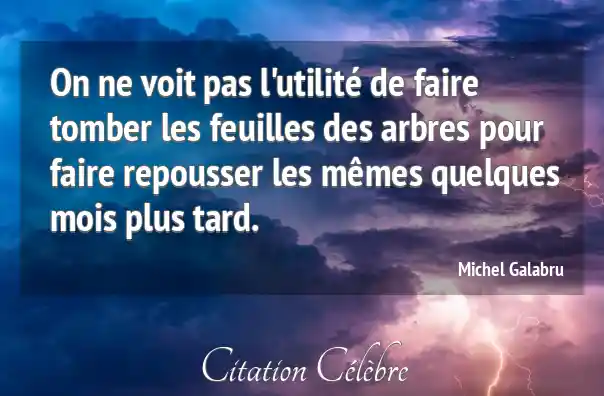 On ne voit pas l'utilité de faire tomber les feuilles des arbres pour faire repousser les mêmes quelques mois plus tard.