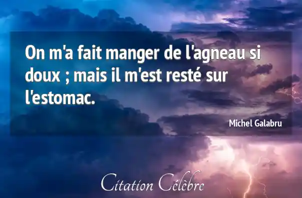 On m'a fait manger de l'agneau si doux ; mais il m'est resté sur l'estomac.
