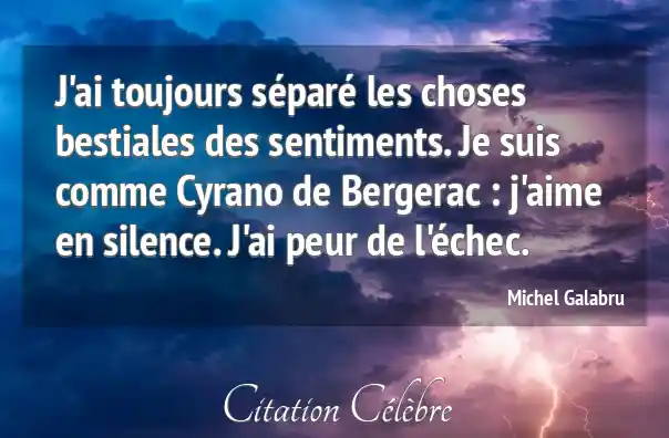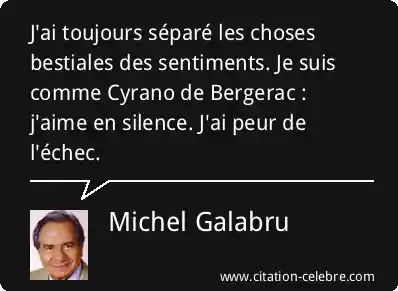 J'ai toujours séparé les choses bestiales des sentiments. Je suis comme Cyrano de Bergerac : j'aime en silence. J'ai peur de l'échec.