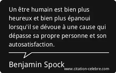 Un être humain est bien plus heureux et bien plus épanoui lorsqu'il se dévoue à une cause qui dépasse sa propre personne et son autosatisfaction.