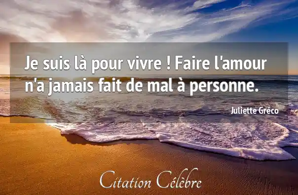 Je suis là pour vivre ! Faire l'amour n'a jamais fait de mal à personne.
