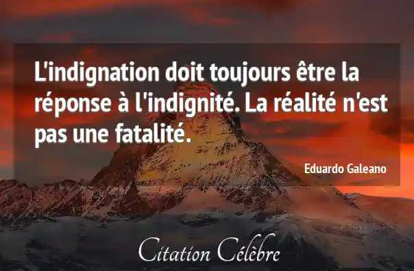 L'indignation doit toujours être la réponse à l'indignité. La réalité n'est pas une fatalité.