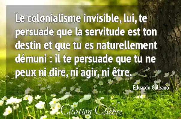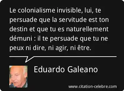 Le colonialisme invisible, lui, te persuade que la servitude est ton destin et que tu es naturellement démuni : il te persuade que tu ne peux ni dire, ni agir, ni être.