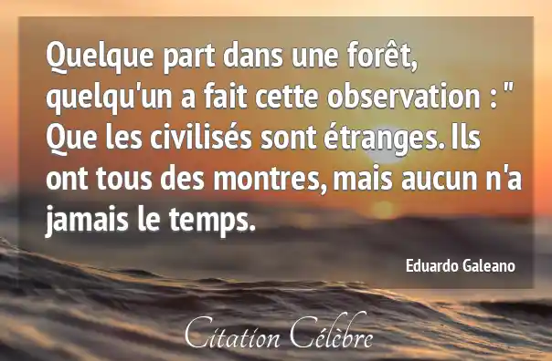 Quelque part dans une forêt, quelqu'un a fait cette observation : " Que les civilisés sont étranges. Ils ont tous des montres, mais aucun n'a jamais le temps.