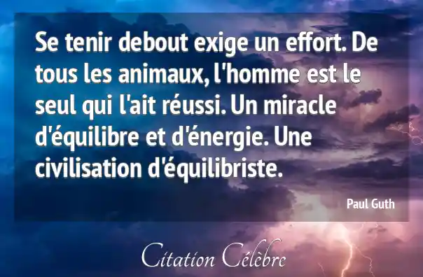 Se tenir debout exige un effort. De tous les animaux, l'homme est le seul qui l'ait réussi. Un miracle d'équilibre et d'énergie. Une civilisation d'équilibriste.