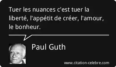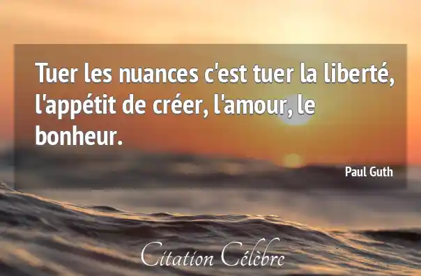 Tuer les nuances c'est tuer la liberté, l'appétit de créer, l'amour, le bonheur.