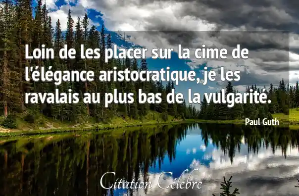 Loin de les placer sur la cime de l'élégance aristocratique, je les ravalais au plus bas de la vulgarité.