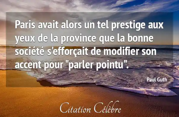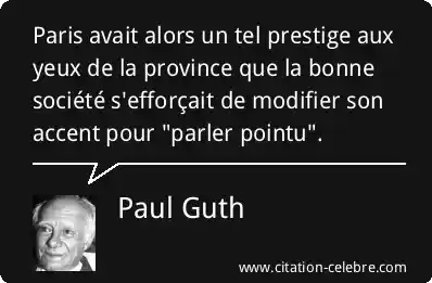 Paris avait alors un tel prestige aux yeux de la province que la bonne société s'efforçait de modifier son accent pour "parler pointu".