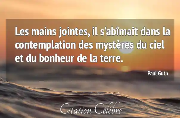 Les mains jointes, il s'abîmait dans la contemplation des mystères du ciel et du bonheur de la terre.