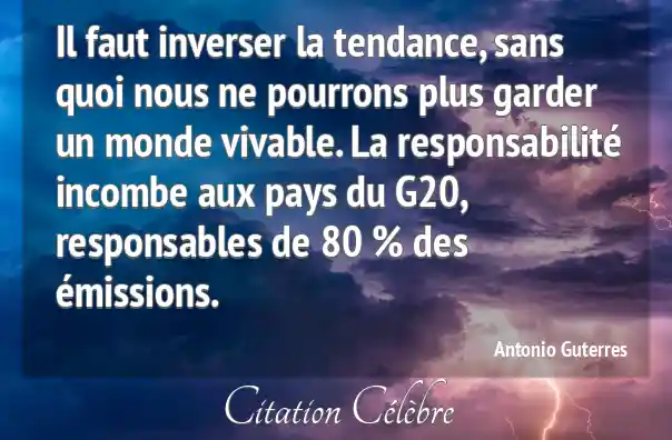 Il faut inverser la tendance, sans quoi nous ne pourrons plus garder un monde vivable. La responsabilité incombe aux pays du G20, responsables de 80 % des émissions.