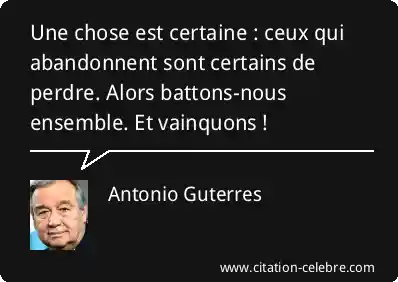 Une chose est certaine : ceux qui abandonnent sont certains de perdre. Alors battons-nous ensemble. Et vainquons !