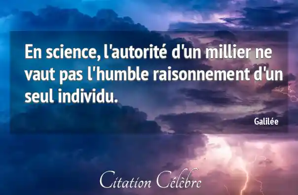 En science, l'autorité d'un millier ne vaut pas l'humble raisonnement d'un seul individu.
