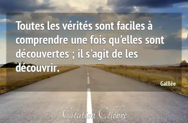 Toutes les vérités sont faciles à comprendre une fois qu'elles sont découvertes ; il s'agit de les découvrir.