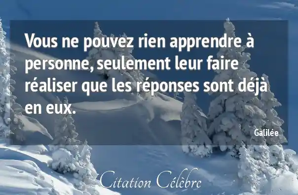 Vous ne pouvez rien apprendre à personne, seulement leur faire réaliser que les réponses sont déjà en eux.