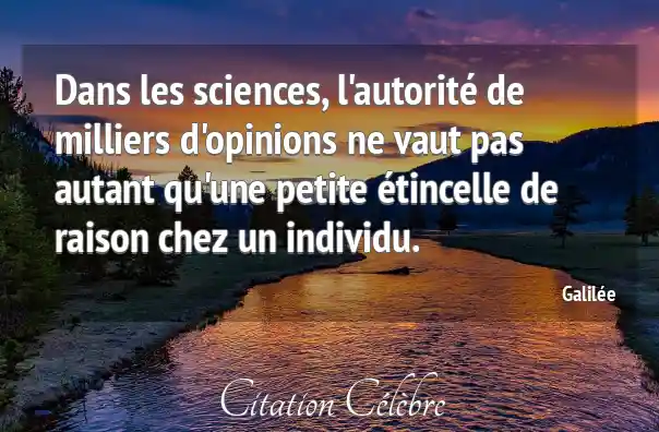 Dans les sciences, l'autorité de milliers d'opinions ne vaut pas autant qu'une petite étincelle de raison chez un individu.