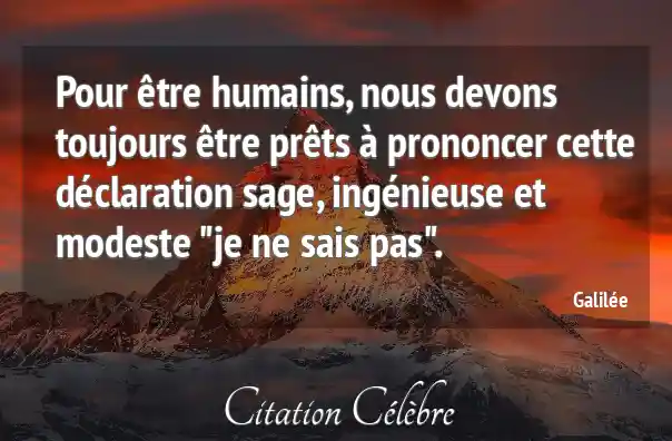 Pour être humains, nous devons toujours être prêts à prononcer cette déclaration sage, ingénieuse et modeste "je ne sais pas".