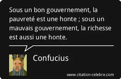 Citation Confucius richesse : Sous un bon gouvernement, la pauvreté est une honte ;...