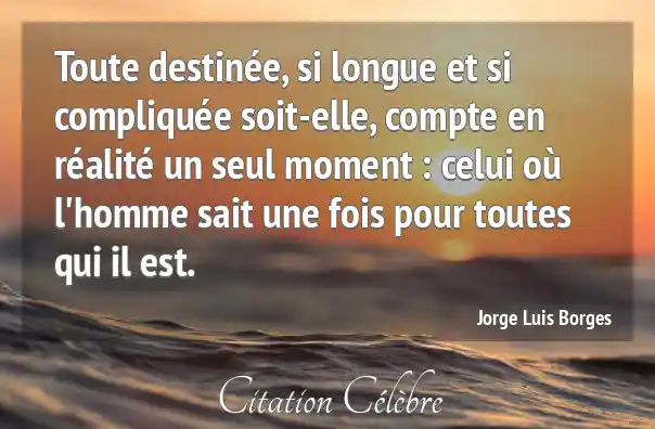 Toute destinée, si longue et si compliquée soit-elle, compte en réalité un seul moment : celui où l'homme sait une fois pour toutes qui il est.