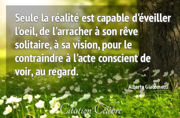 Seule la réalité est capable d'éveiller l'oeil, de l'arracher à son rêve solitaire, à sa vision, pour le contraindre à l'acte conscient de voir, au regard.