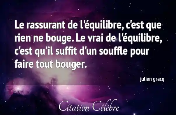 Le rassurant de l'équilibre, c'est que rien ne bouge. Le vrai de l'équilibre, c'est qu'il suffit d'un souffle pour faire tout bouger.
