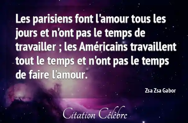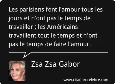 Les parisiens font l'amour tous les jours et n'ont pas le temps de travailler ; les Américains travaillent tout le temps et n'ont pas le temps de faire l'amour.