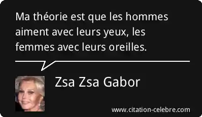 Ma théorie est que les hommes aiment avec leurs yeux, les femmes avec leurs oreilles.