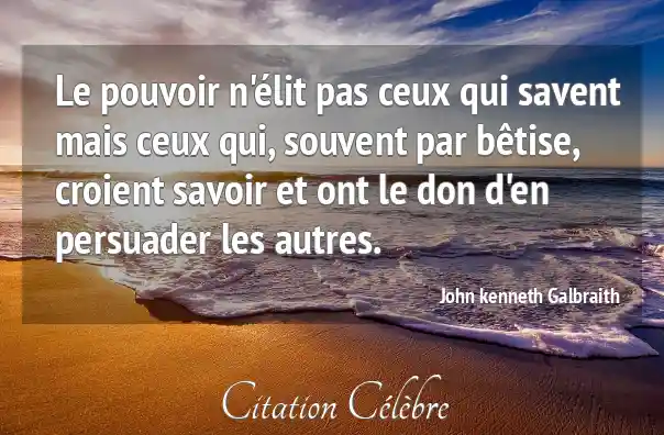 Le pouvoir n'élit pas ceux qui savent mais ceux qui, souvent par bêtise, croient savoir et ont le don d'en persuader les autres.
