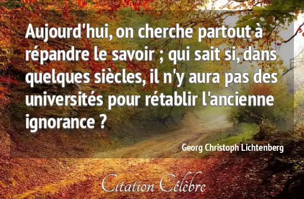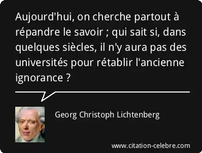 Aujourd'hui, on cherche partout à répandre le savoir ; qui sait si, dans quelques siècles, il n'y aura pas des universités pour rétablir l'ancienne ignorance ?