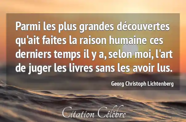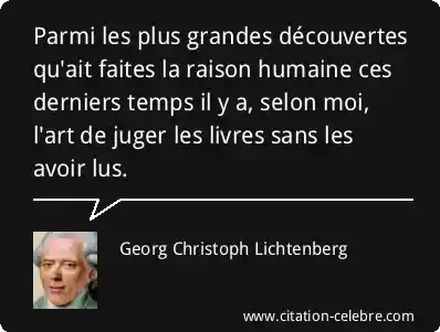 Parmi les plus grandes découvertes qu'ait faites la raison humaine ces derniers temps il y a, selon moi, l'art de juger les livres sans les avoir lus.