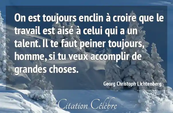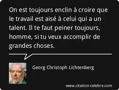 On est toujours enclin à croire que le travail est aisé à celui qui a un talent. Il te faut peiner toujours, homme, si tu veux accomplir de grandes choses.