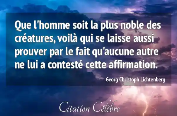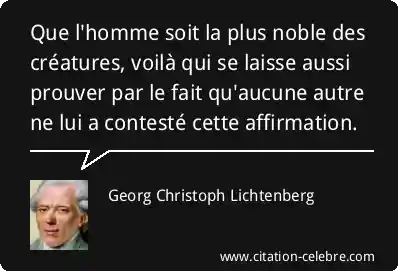 Que l'homme soit la plus noble des créatures, voilà qui se laisse aussi prouver par le fait qu'aucune autre ne lui a contesté cette affirmation.