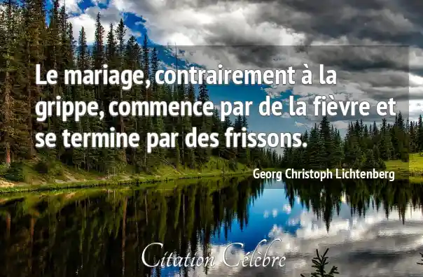 Le mariage, contrairement à la grippe, commence par de la fièvre et se termine par des frissons.