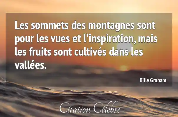 Les sommets des montagnes sont pour les vues et l'inspiration, mais les fruits sont cultivés dans les vallées.