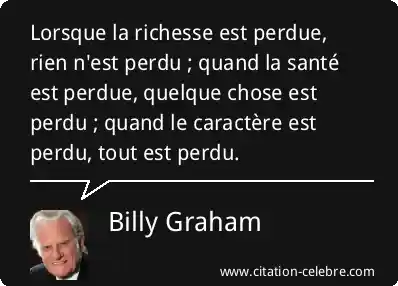 Lorsque la richesse est perdue, rien n'est perdu ; quand la santé est perdue, quelque chose est perdu ; quand le caractère est perdu, tout est perdu.