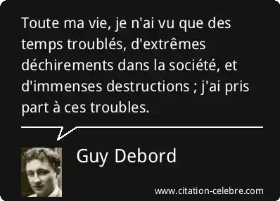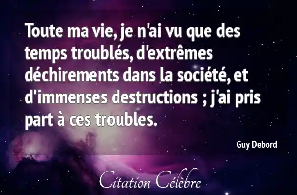 Toute ma vie, je n'ai vu que des temps troublés, d'extrêmes déchirements dans la société, et d'immenses destructions ; j'ai pris part à ces troubles.