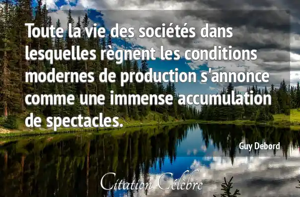 Toute la vie des sociétés dans lesquelles règnent les conditions modernes de production s'annonce comme une immense accumulation de spectacles.