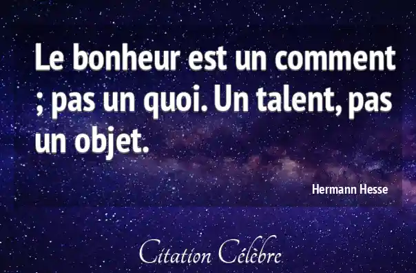 Le bonheur est un comment ; pas un quoi. Un talent, pas un objet.