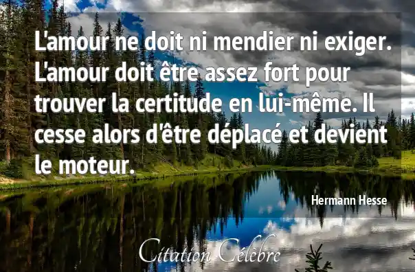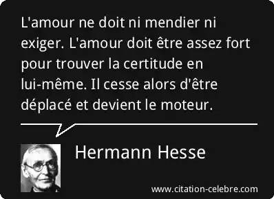 L'amour ne doit ni mendier ni exiger. L'amour doit être assez fort pour trouver la certitude en lui-même. Il cesse alors d'être déplacé et devient le moteur.