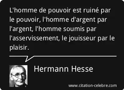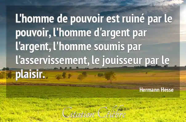 L'homme de pouvoir est ruiné par le pouvoir, l'homme d'argent par l'argent, l'homme soumis par l'asservissement, le jouisseur par le plaisir.