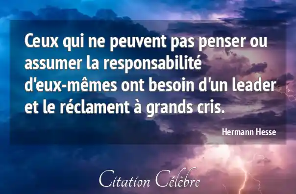Ceux qui ne peuvent pas penser ou assumer la responsabilité d'eux-mêmes ont besoin d'un leader et le réclament à grands cris.