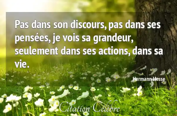 Pas dans son discours, pas dans ses pensées, je vois sa grandeur, seulement dans ses actions, dans sa vie.