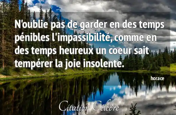 N'oublie pas de garder en des temps pénibles l'impassibilité, comme en des temps heureux un coeur sait tempérer la joie insolente.