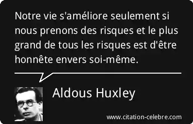 Notre vie s'améliore seulement si nous prenons des risques et le plus grand de tous les risques est d'être honnête envers soi-même.