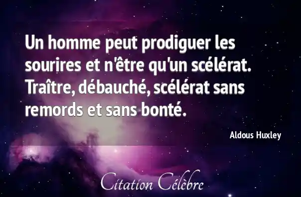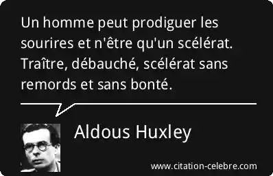 Citation Aldous Huxley homme : Un homme peut prodiguer les sourires et n'être qu'un scélérat....