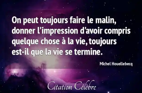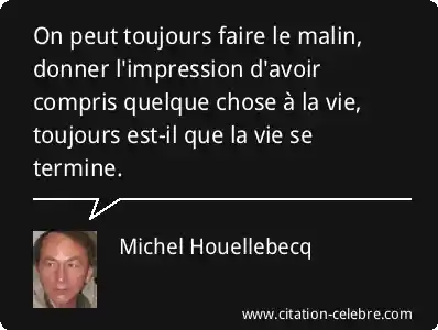 On peut toujours faire le malin, donner l'impression d'avoir compris quelque chose à la vie, toujours est-il que la vie se termine.