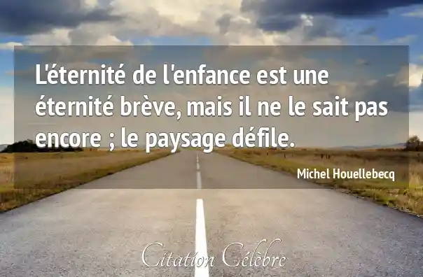 L'éternité de l'enfance est une éternité brève, mais il ne le sait pas encore ; le paysage défile.