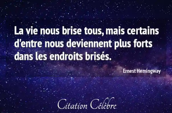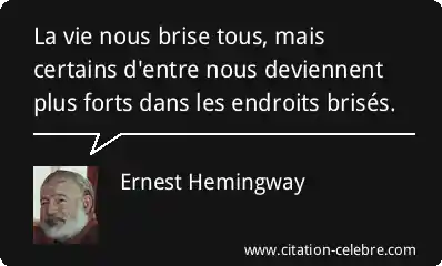 La vie nous brise tous, mais certains d'entre nous deviennent plus forts dans les endroits brisés.