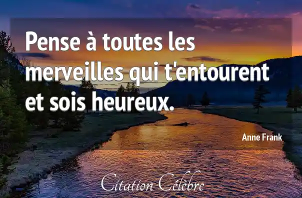 Pense à toutes les merveilles qui t'entourent et sois heureux.